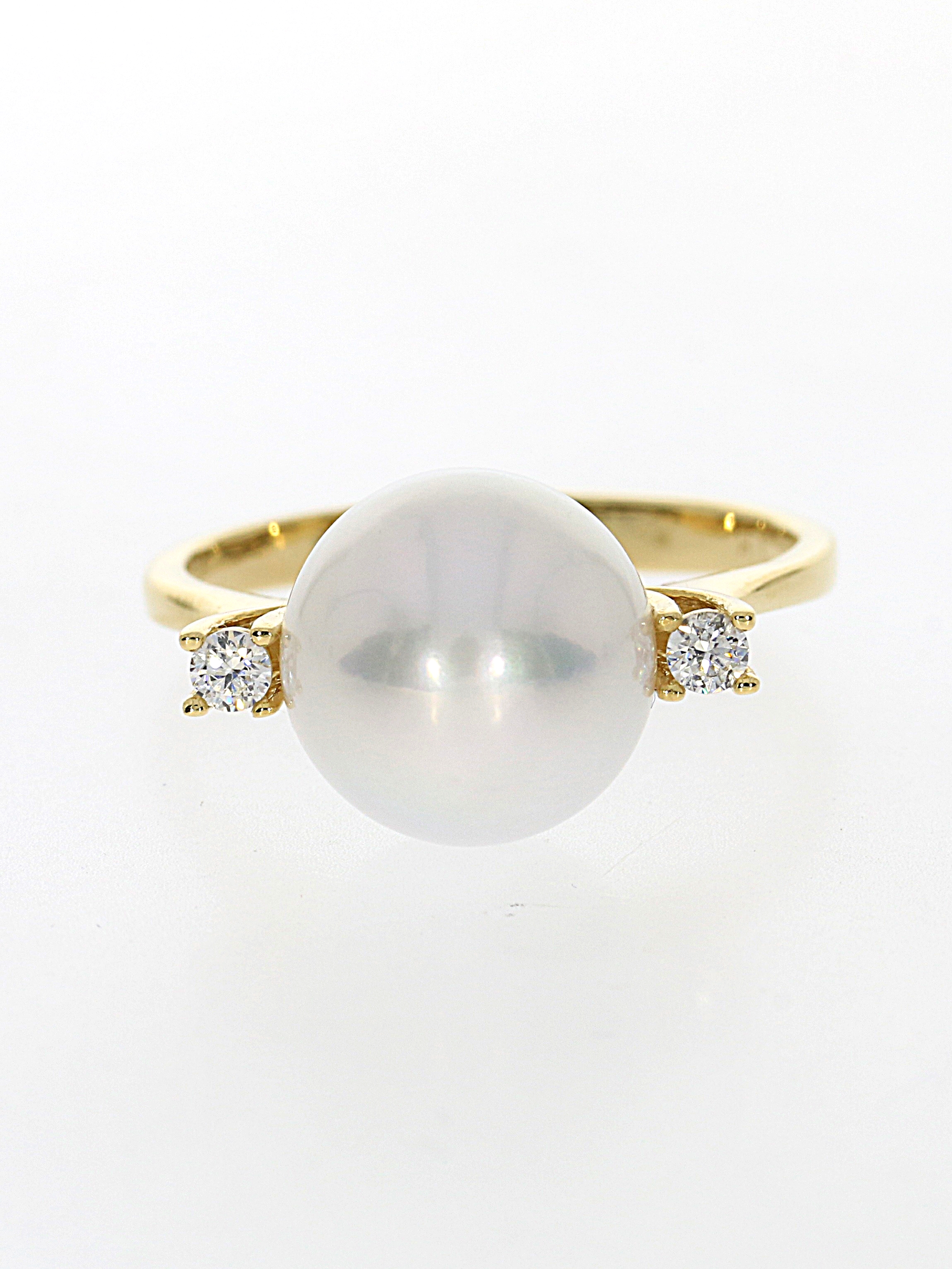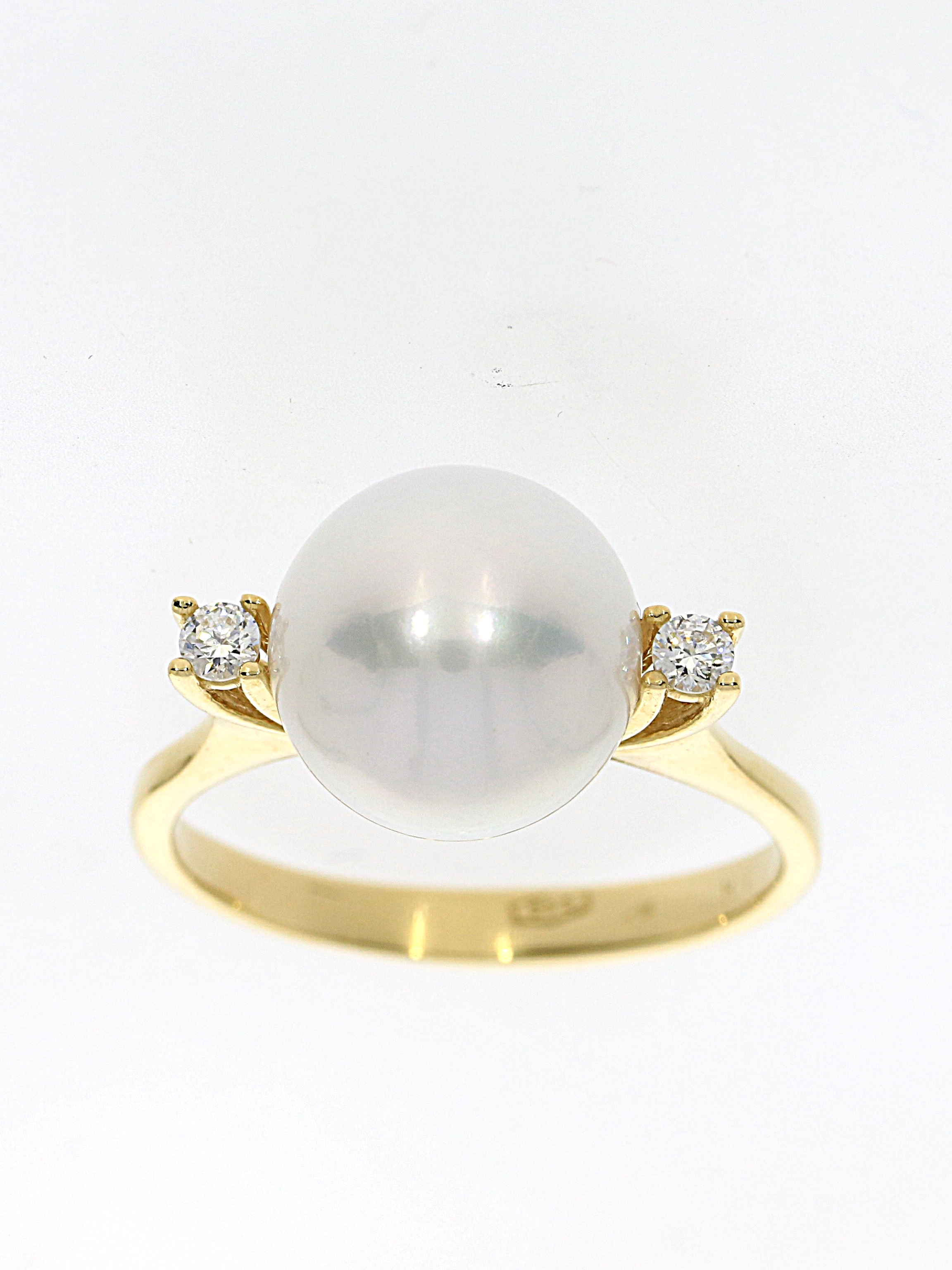 טבעת פנינה גדולה ואבני קרסטל שקופים בצד