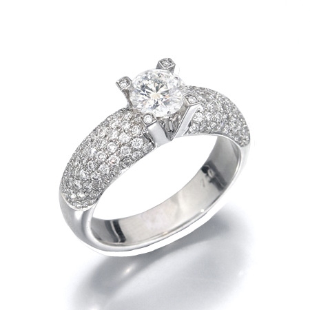RRT-14005 טבעת אירוסין מודל "טאפני" יהלום מרכזי ו5 שורות יהלומי צד