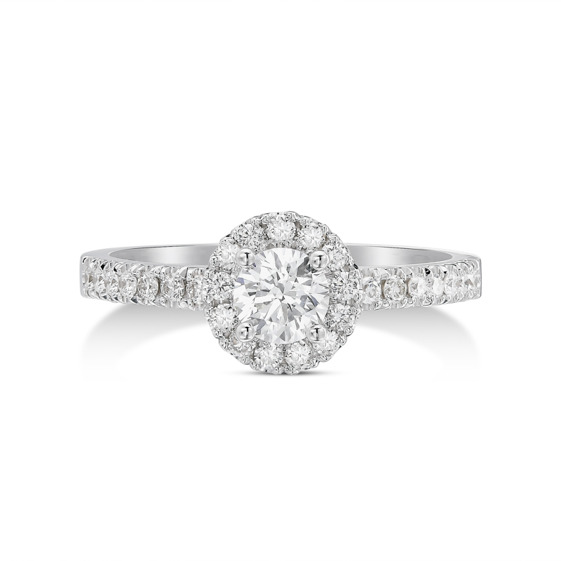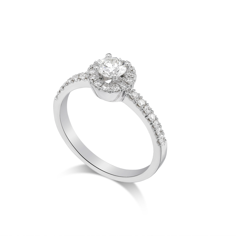 טבעת ארוסין עם יהלום מרכזי ומסביבו יהלומים קטנים