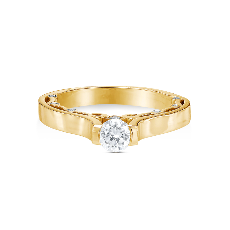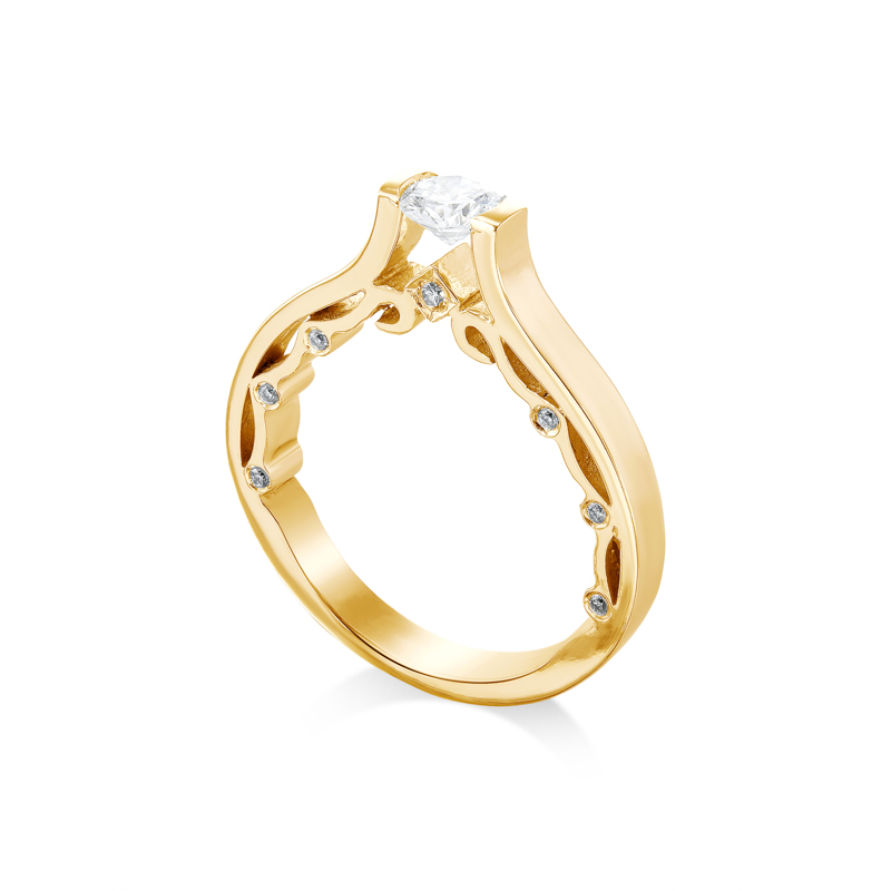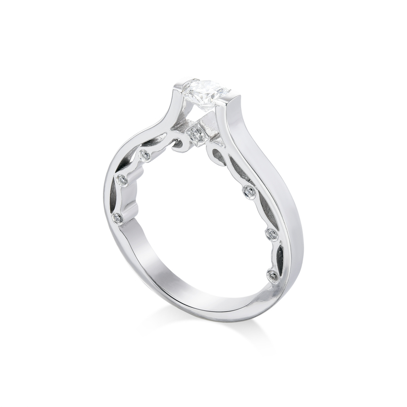 RT16915 טבעת מעוצבת ויחודית עם יהלום מרכזי ויהלומי פרופיל