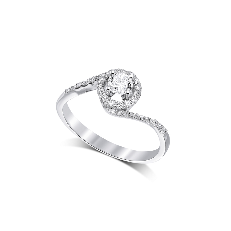 RT20100 טבעת סוליטר עם יהלום מרכזי ומסביב יהלומי צד מסובב