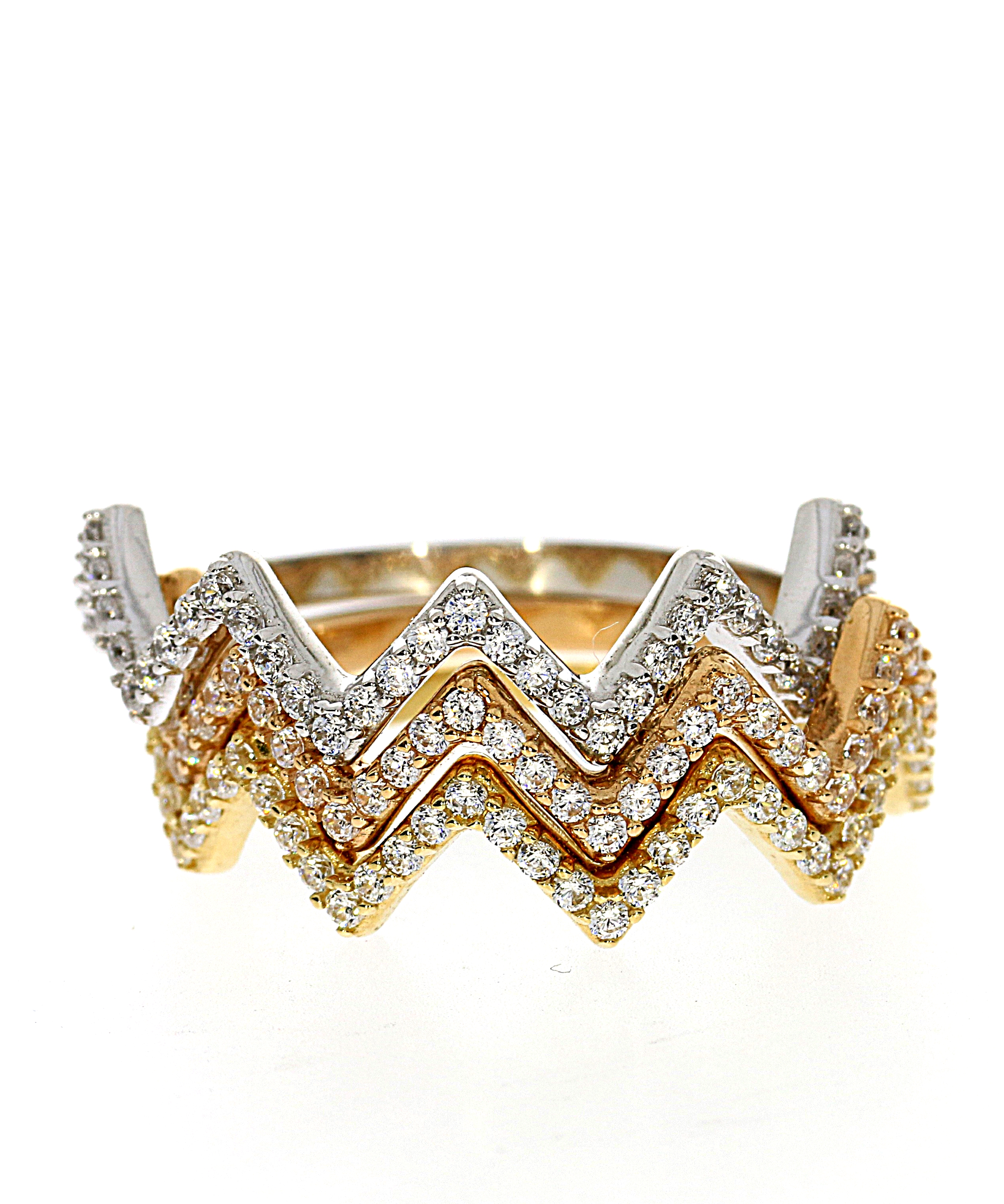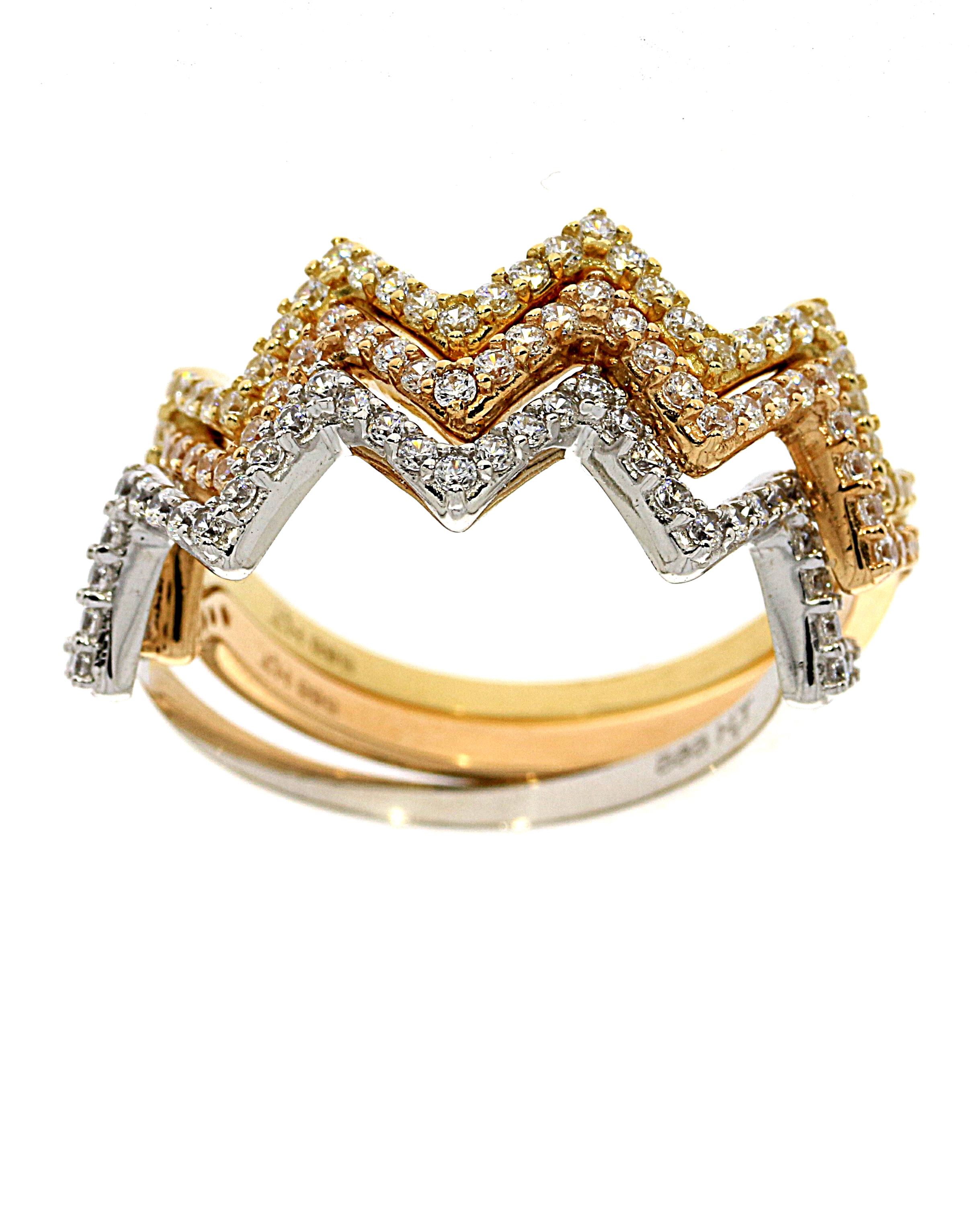 TR-115 3 טבעות זיג זג בצבעי זהב אדום לבן וצהוב משובצים-יתן לענוד כל אחת בנפרד או ביחד..